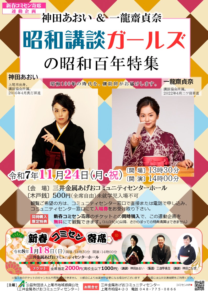 「新春コミセン寄席~昭和講談ガールズの昭和百年特集~」を開催します