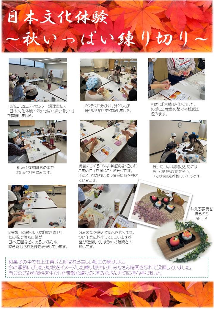 「日本文化体験~秋いっぱい練り切り~(10/9)」を開催しました。