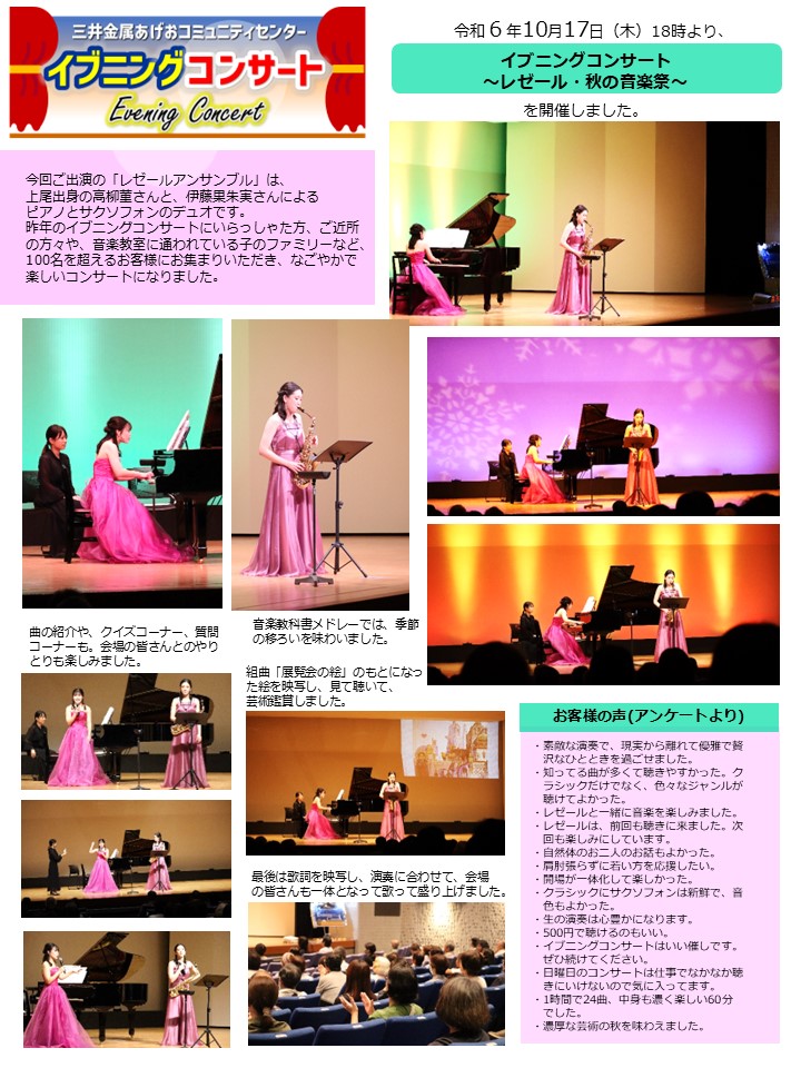 「イブニングコンサート~レゼール秋の音楽祭~(10/17)」を開催しました。