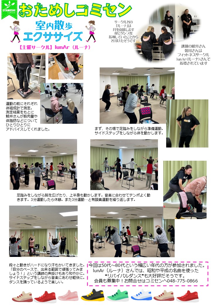 おためしコミセン「室内散歩エクササイズ」を開催しました。