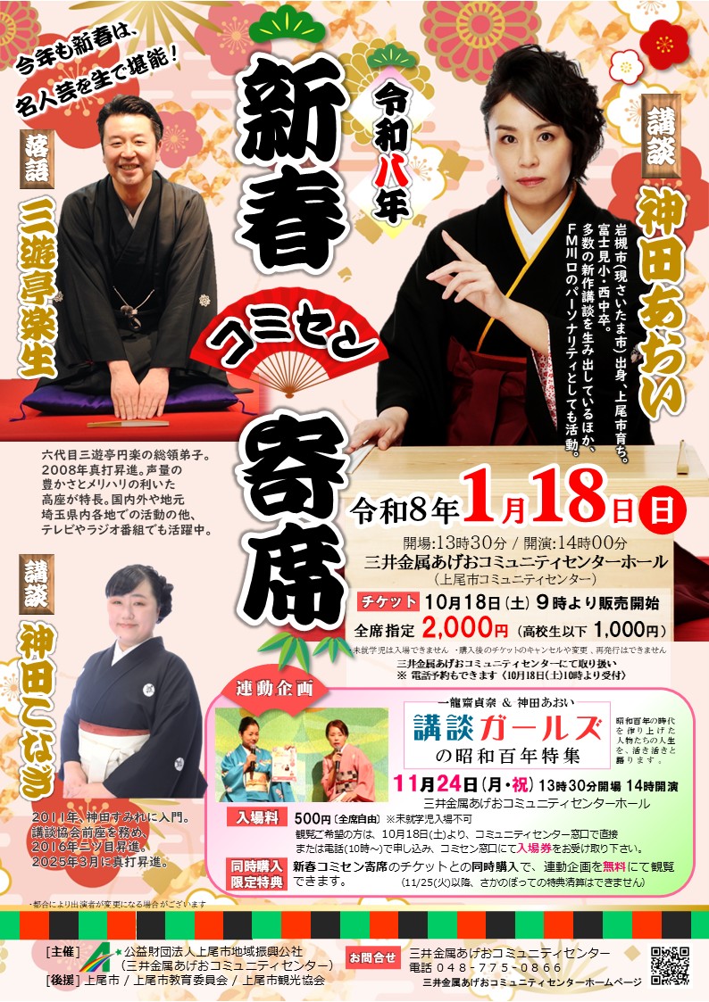 ・電話受付 10月18日(土)10:00~※三井金属あげおコミュニティセンターにて