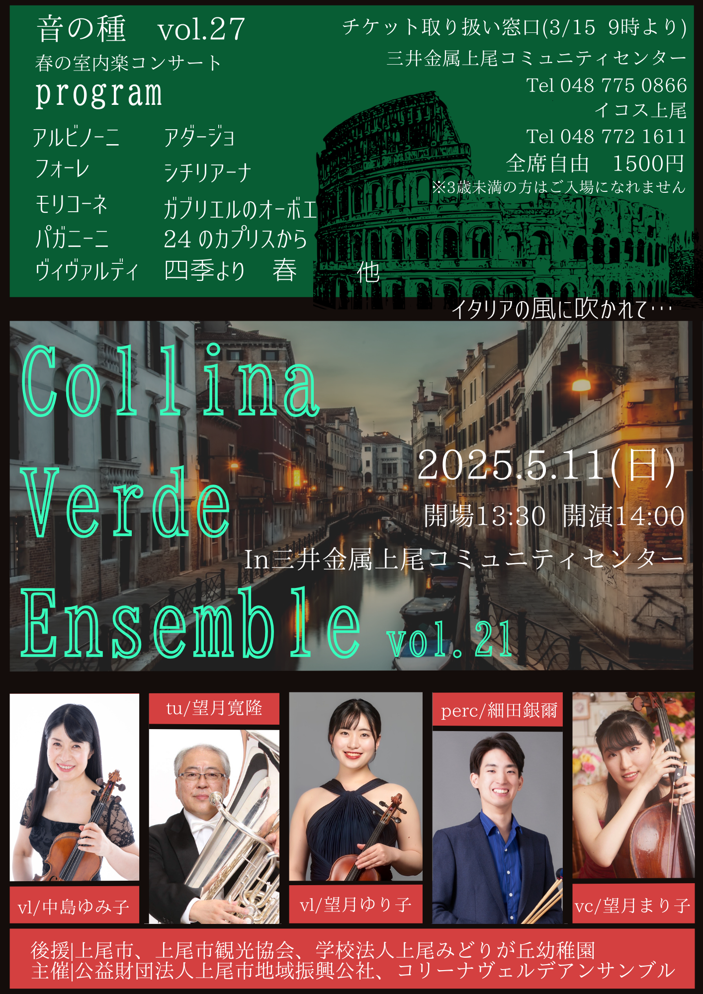 0歳からのコンサート&春の室内楽コンサート~Collina Verde Ensemble vol.22~のご案内(PDF:453KB)