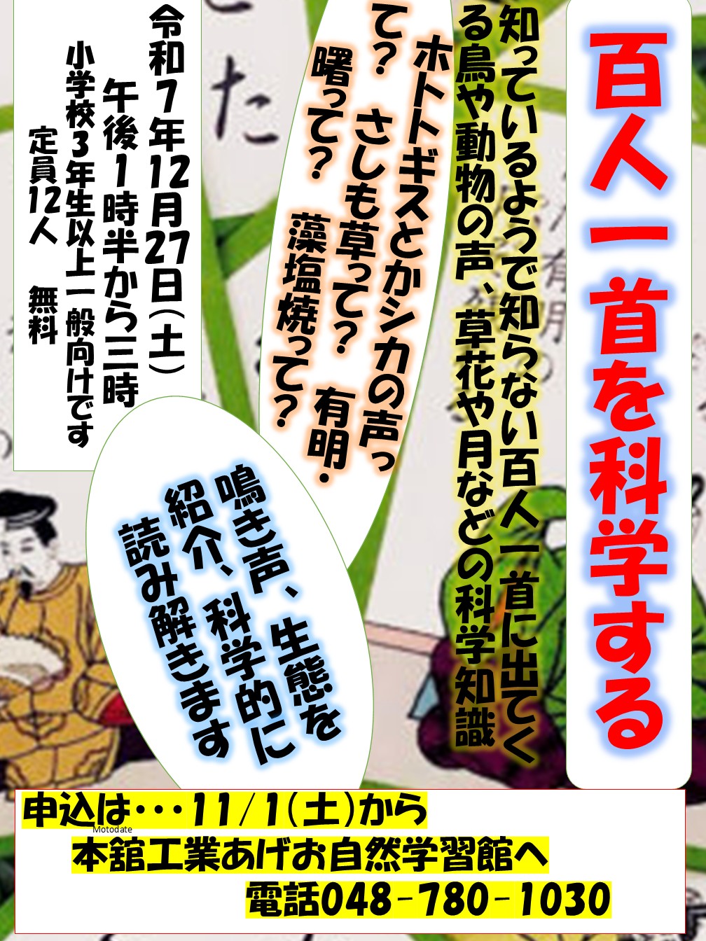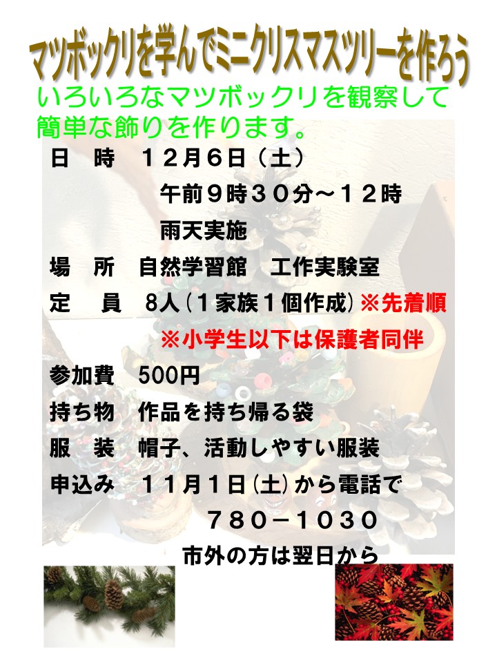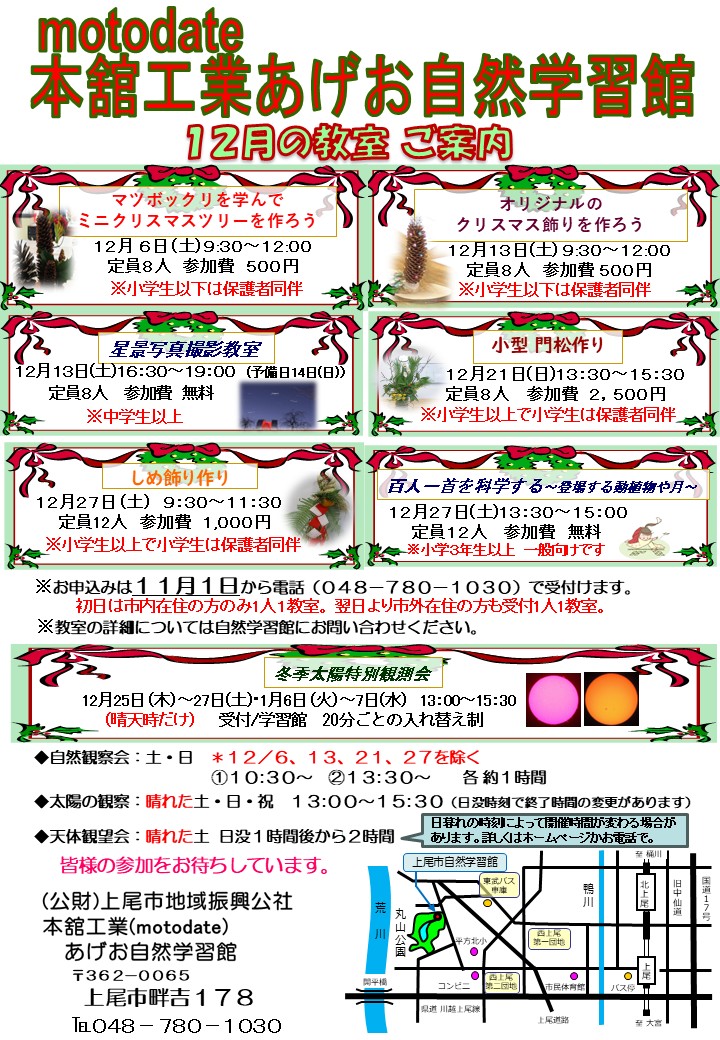 - 自然学習教室開催(12/6、13、21、27)を除く