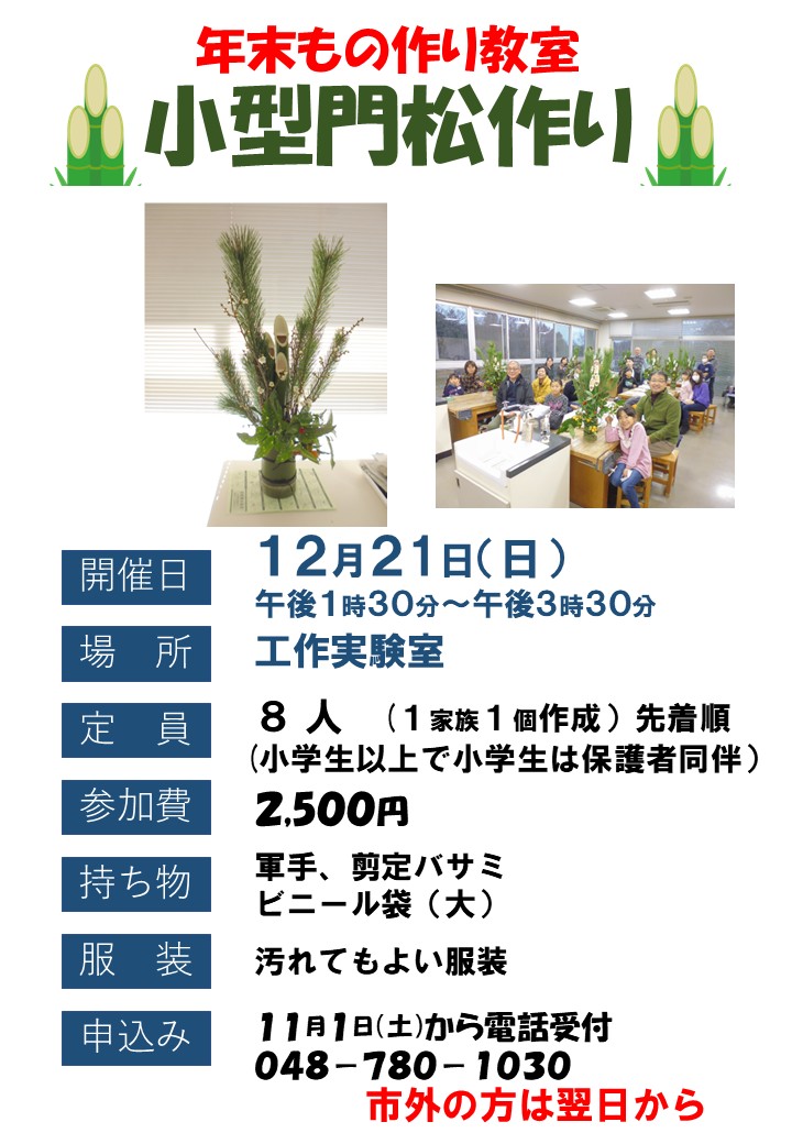 11月1日午前9時から電話(048-780-1030)で受付ます。