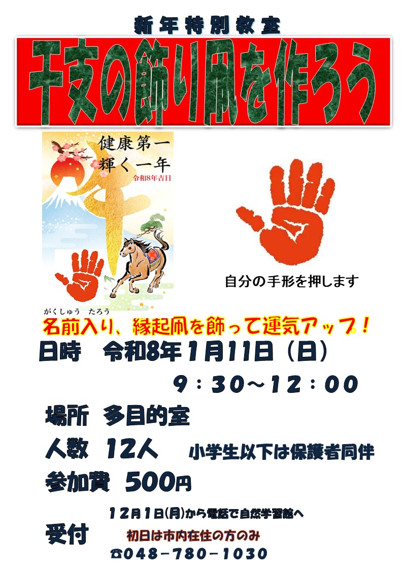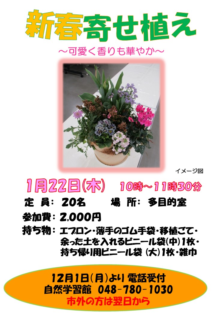 12月1日午前9時から電話(048-780-1030)で受付ます。