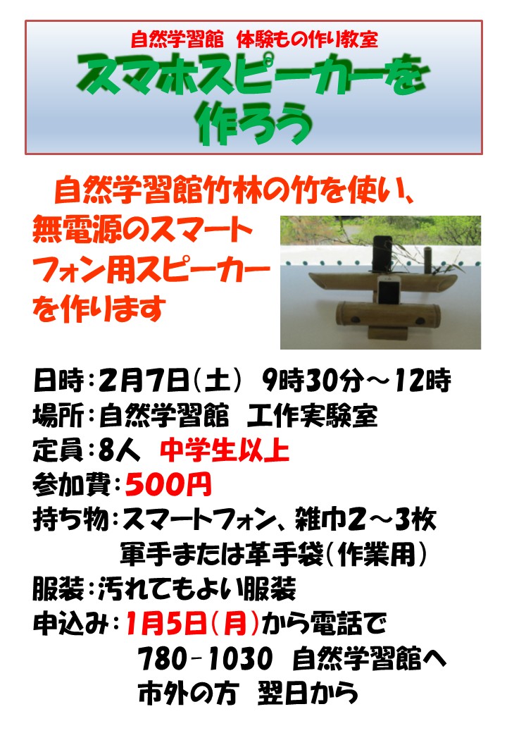 詳しくは、自然学習館へお問い合わせください。
