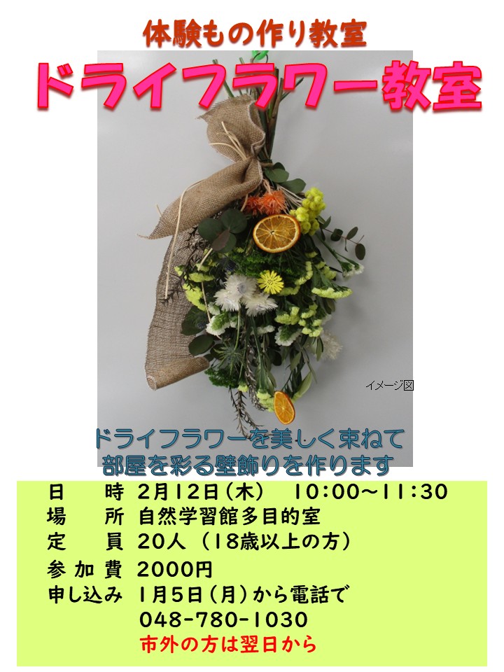 1月5日午前9時から電話(048-780-1030)で受付ます。