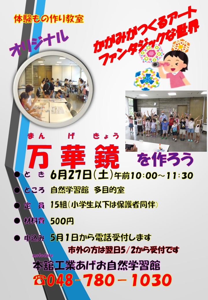 - 作って遊ぼう 身の回りの材料で遊べる簡単なおもちゃを作ります。遊び時間を含めて20~30分程度。対象:4,5歳から 保護者同伴