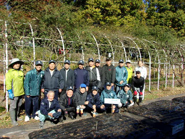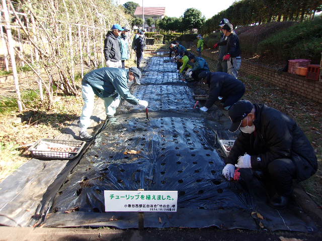 令和6年11月24日(日)、丸山公園中央花壇において、小敷谷西部区自治会「竹の会」の皆様と管理事務所職員により、