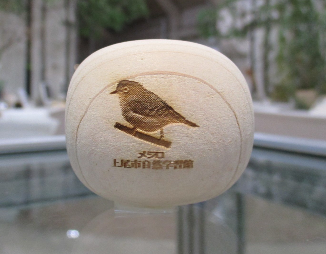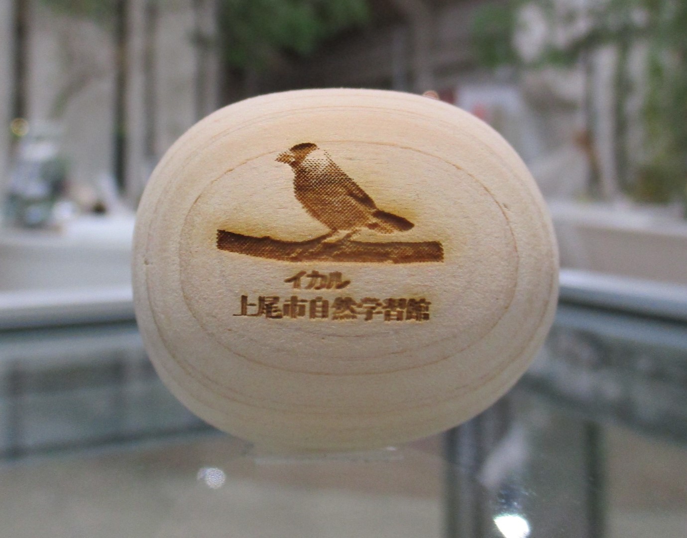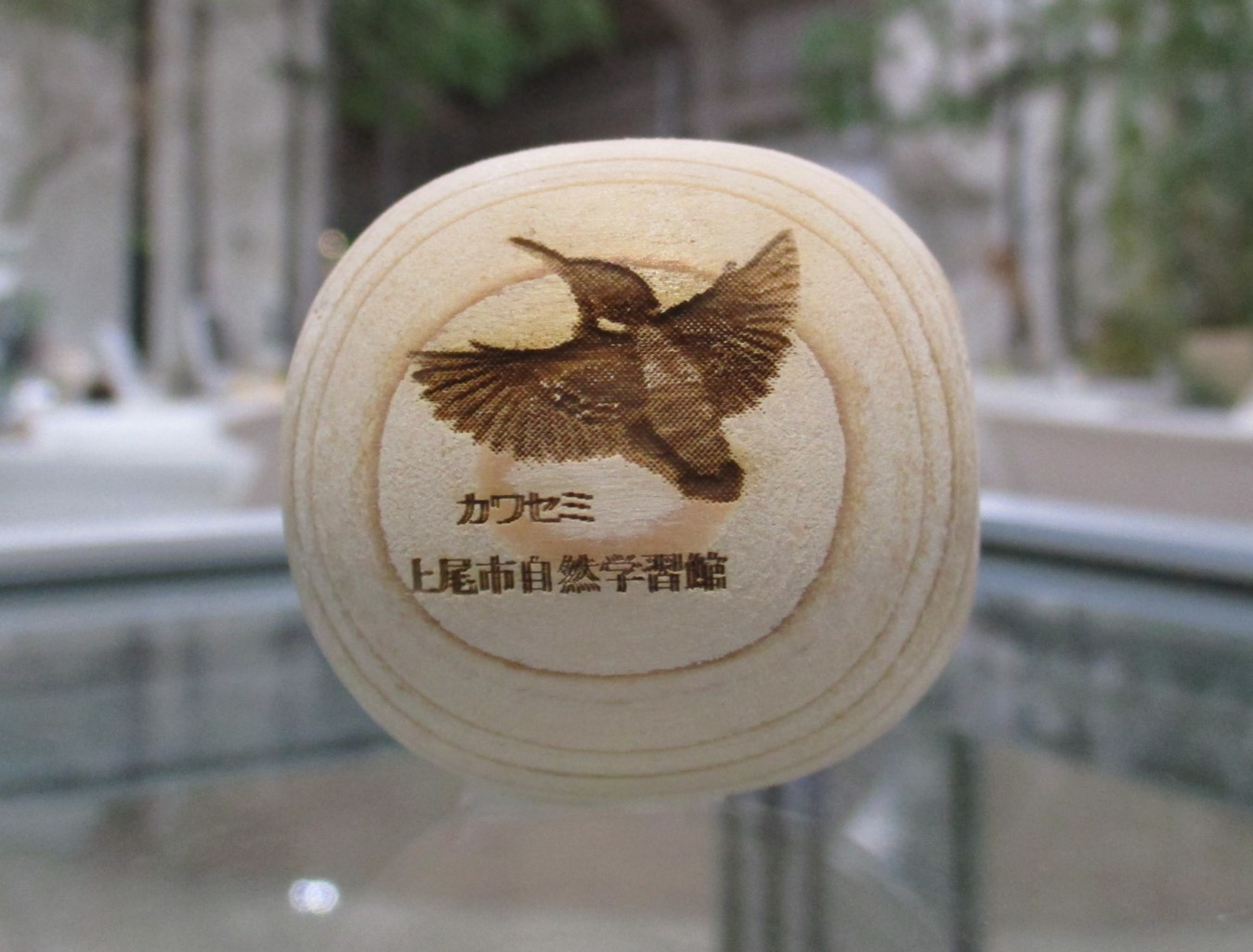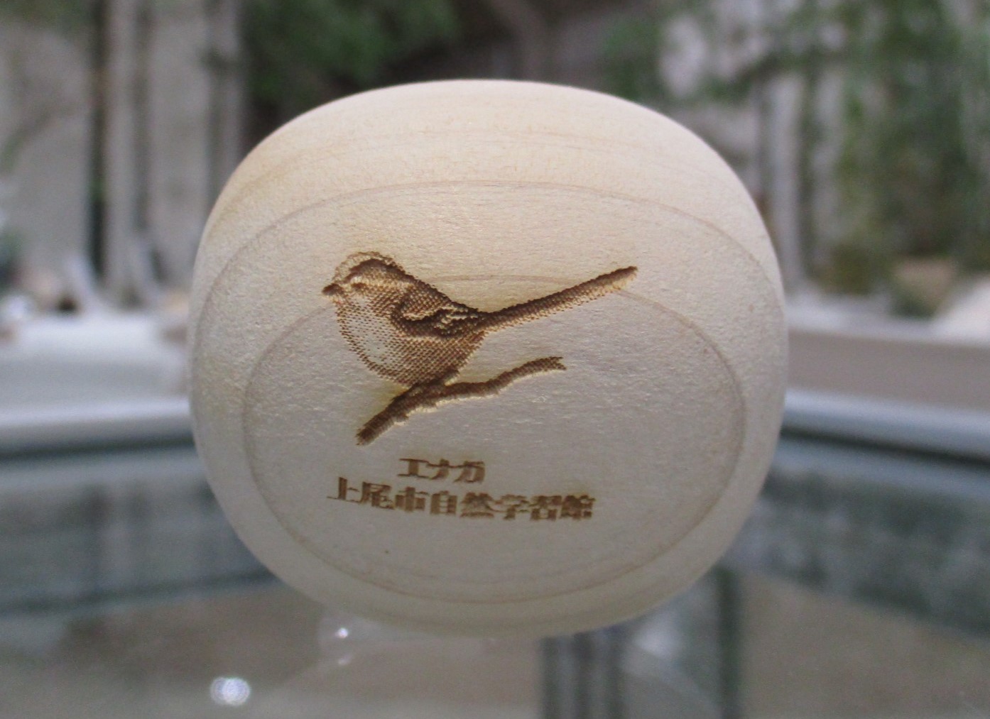 埼玉県の森林管理で発生した間伐材(ヒノキ)を使って、埼玉県内の就労支援施設で制作された木玉に、上尾丸山公園周辺で生息している昆虫・野鳥・植物などを刻印して販売しています。この木玉には上尾丸山公園周辺の自然環境を多くの方に知ってもらいたいという願いが込められています。