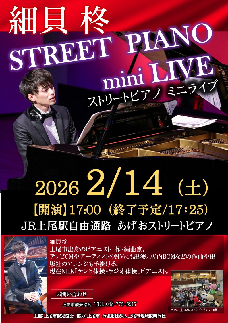 コミセンでの<細貝柊PIANO CONCERT>終了後「細貝柊 STREET PIANO mini LIVE」が開催されます!