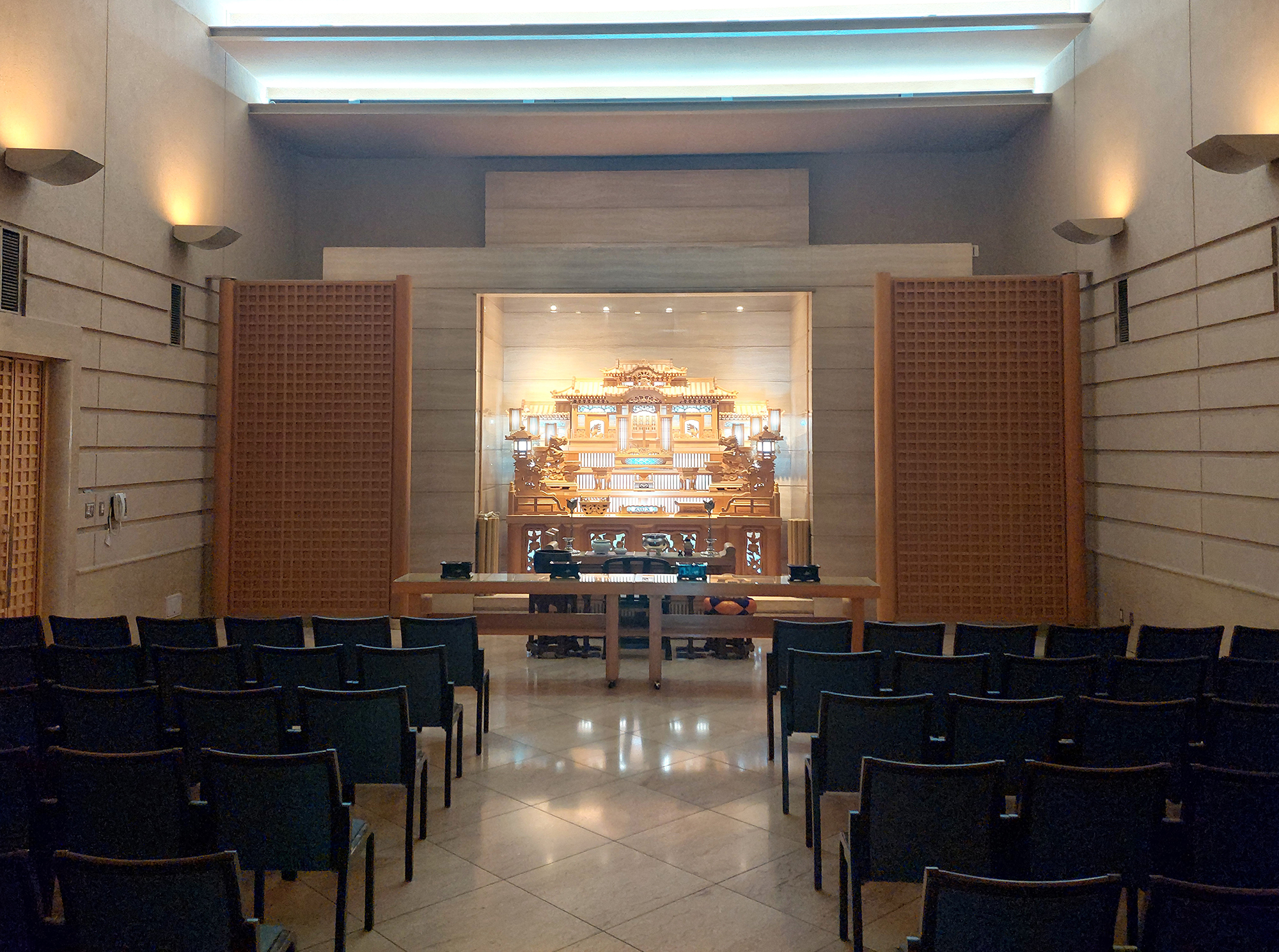 | 祭壇 | 仏式:3、正宗式:1、神式:1、キリスト式:1 正宗祭壇(厨子の種類は予約時にご指定ください。) 1.厨子内法 : W57×H80cm 「厨子:普通」 2.厨子内法 : W65×H100cm 「厨子:大」 |